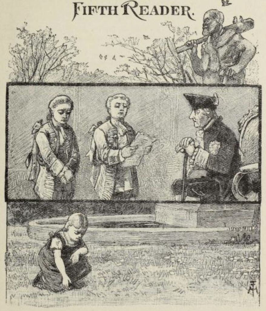 Below are the Farny illustrations that appear in the McGuffey’s Fifth Eclectic Reader. The captions include page numbers and the illustration names that appear in the Table of Contents.