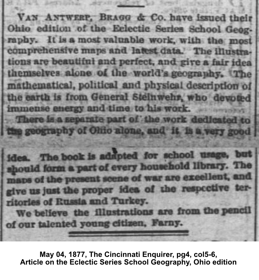 A May 04, 1977, article in The Cincinnati Enquirer noted Farny’s illustrations in the 1877 issue. It’s unclear if he illustrated the first (1870) edition, though it seems unlikely given he was in Europe from 1867-1870.