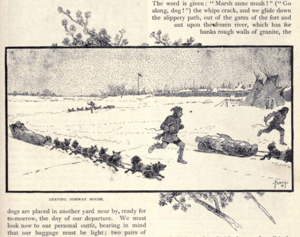 The December 09, 1882, issue of St. Nicholas Magazine featured Coasting on Lake Winnipeg, a tale from Edmund A. Struthers, a Canadian whose authoring history is little known. This was one of several stories Farny authored for St. Nicholas Magazine, launched by Scribner’s in 1873 to focus on the youth market.