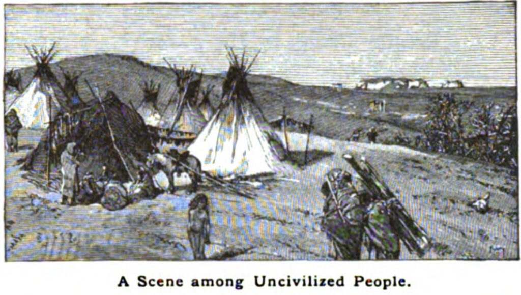 Page 15: A Scene Among Uncivilized People, 1883-Preface-The-Eclectic-Elementary-Geography-Farny-Illustration-A-Scene-Among-Uncivilized-People-pg15.jpg, https://babel.hathitrust.org/cgi/pt?id=hvd.32044097023451&seq=21