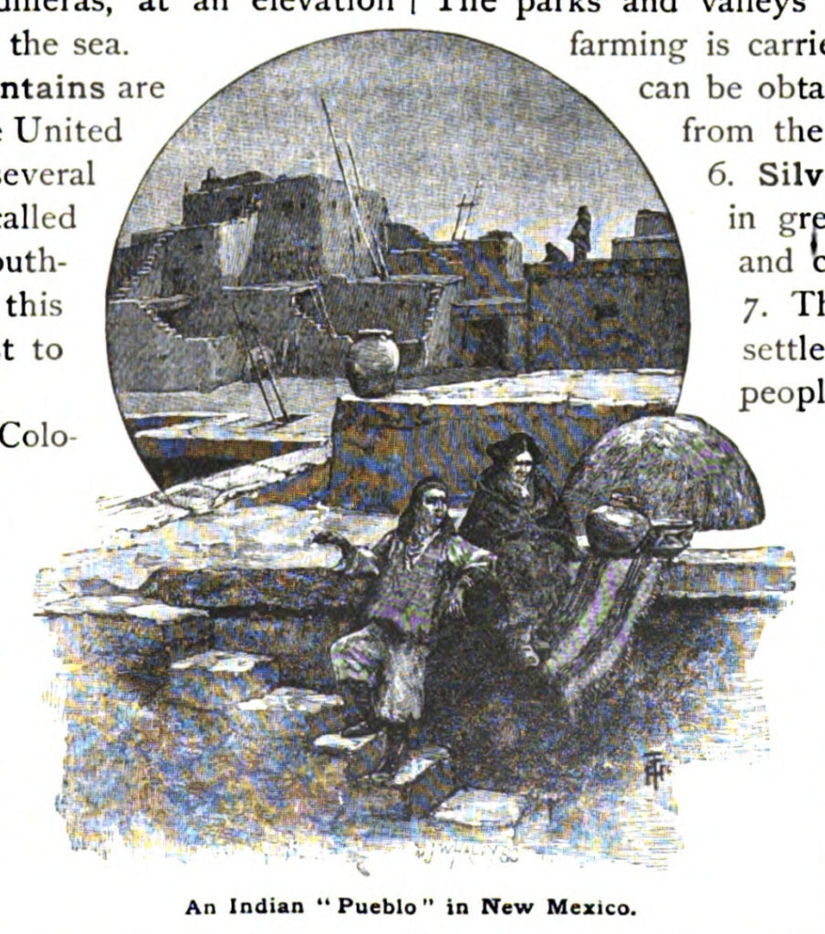 Page 47: An Indian “Pueblo” in New Mexico, 1883-Preface-The-Eclectic-Elementary-Geography-Farny-Illustration-An-Indian-Pueblo-in-NM-pg47.jpg, https://babel.hathitrust.org/cgi/pt?id=hvd.32044097023451&seq=53, https://onlinecollections.syr.edu/objects/29406/hopi-indian-village