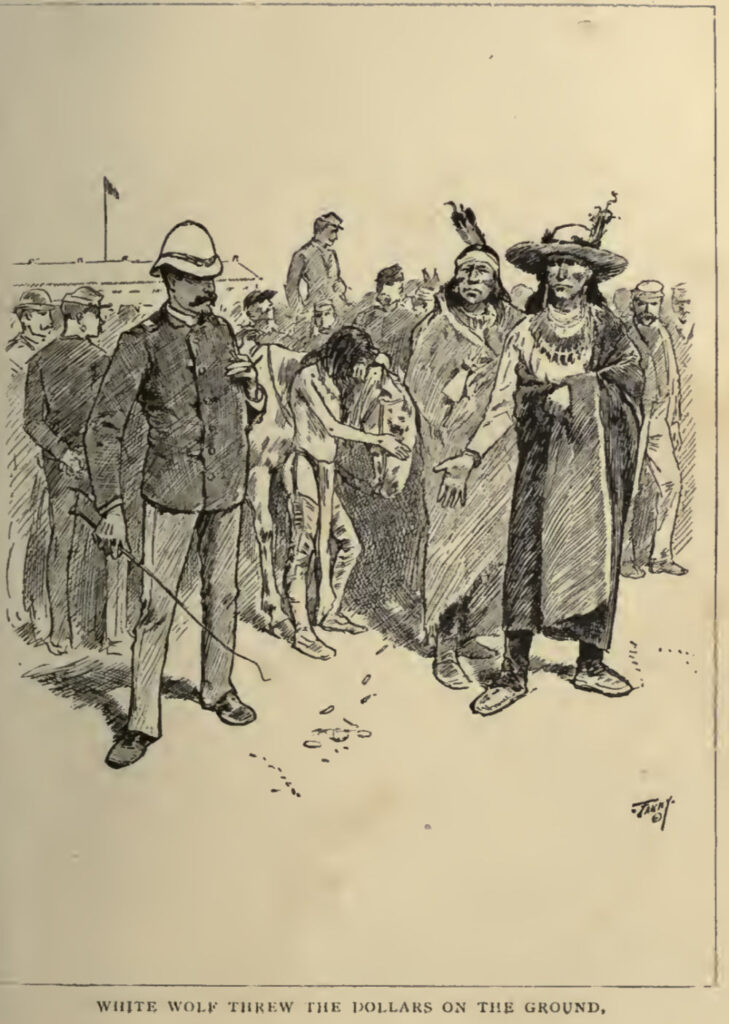 The book Howling Wolf and His Trick-Pony, by Mrs. LIzzie W. Champney, was released in 1886, though I could only find an 1888 version for our purposes. 1886 ads like this for the book noted that the book was “Illustrated by H. F. Farny, and from photographs”. In fact, I could only identify one picture of Farny’s in the book, with many of the rest of the illustrations created by F. T. Merrill, a long time illustrator most famous for his work in Louisa May Wolcott’s 1880 book, Little Women.