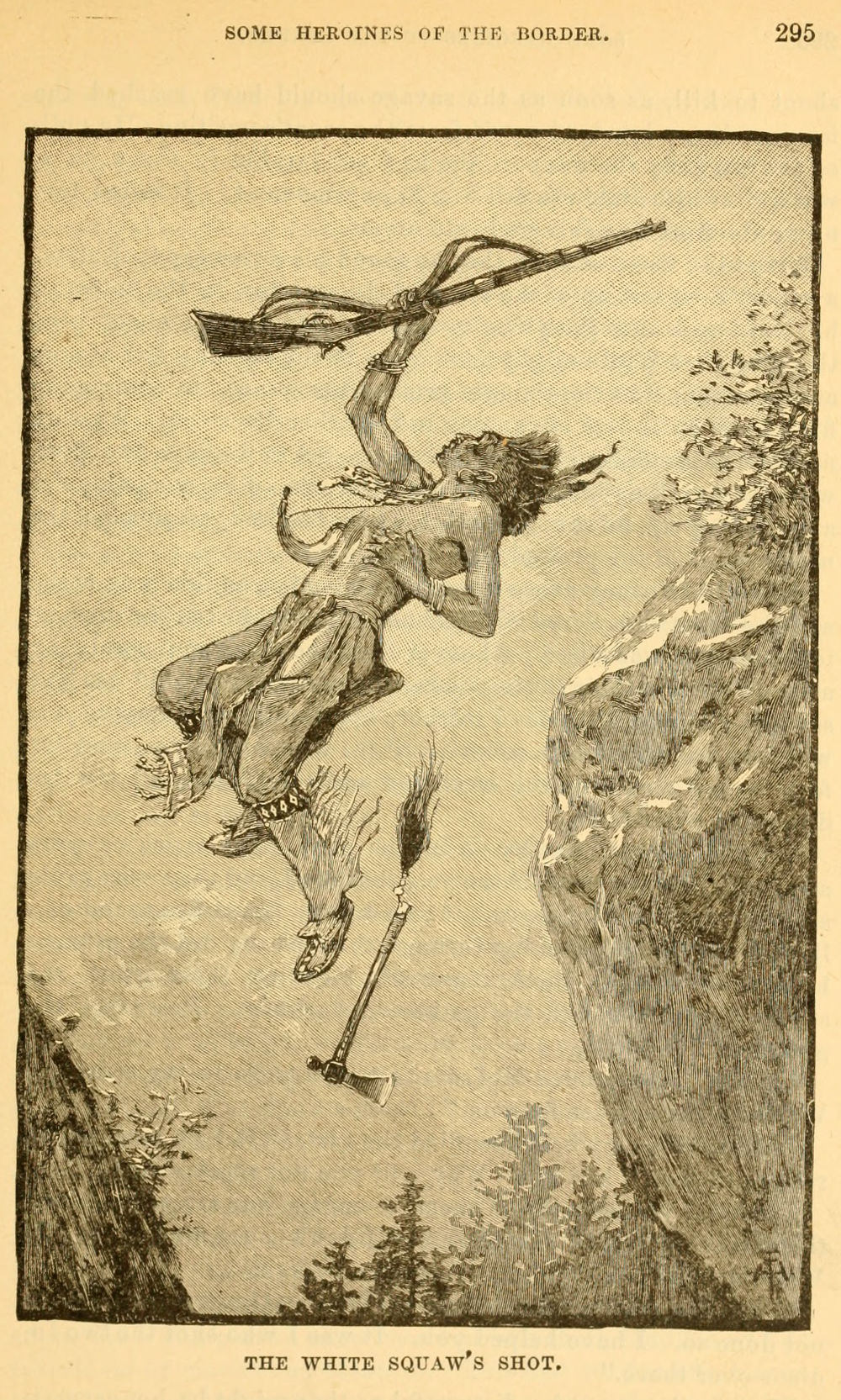 The second image appears forty pages later on page 295 with the caption “The White Squaw’s Shot“: