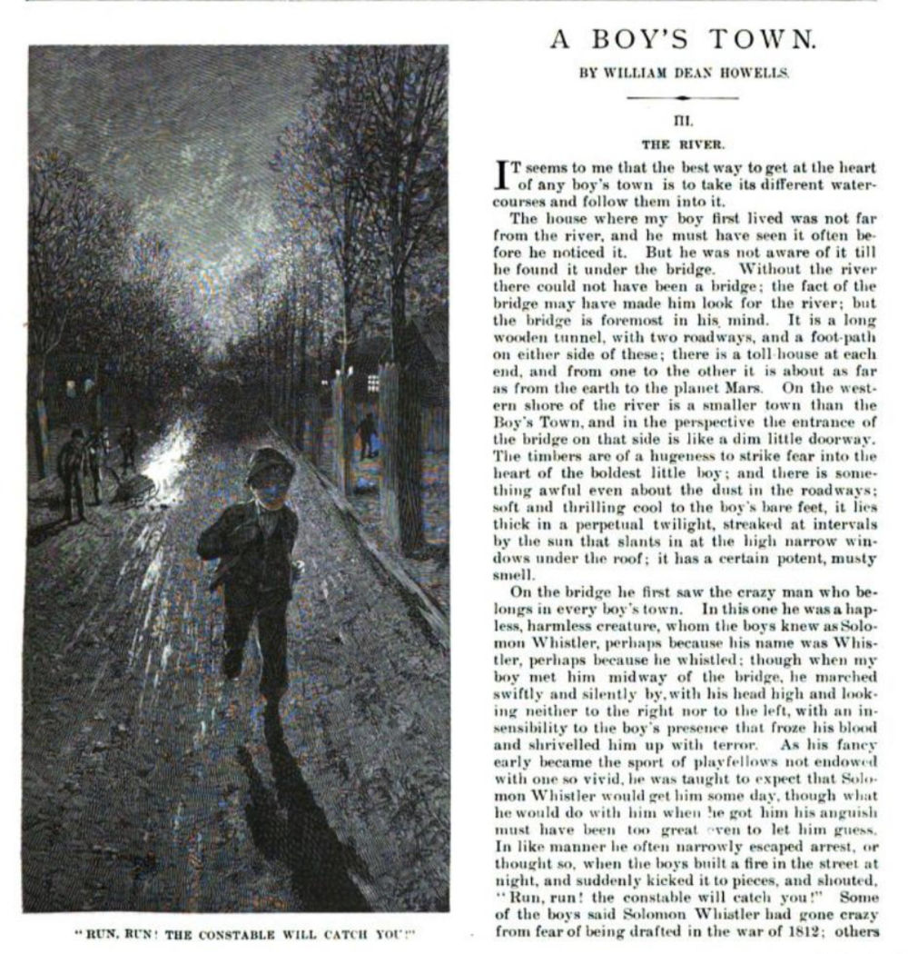 This was published in book form in 1890. The following is second edition published in 1918: https://archive.org/details/boystown00howe/page/n7/mode/2up?ref=ol&view=theater