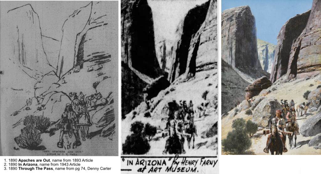 My conclusion, In Arizona and Through the Pass images look identical to The Apaches are Out! and are likely the same image.