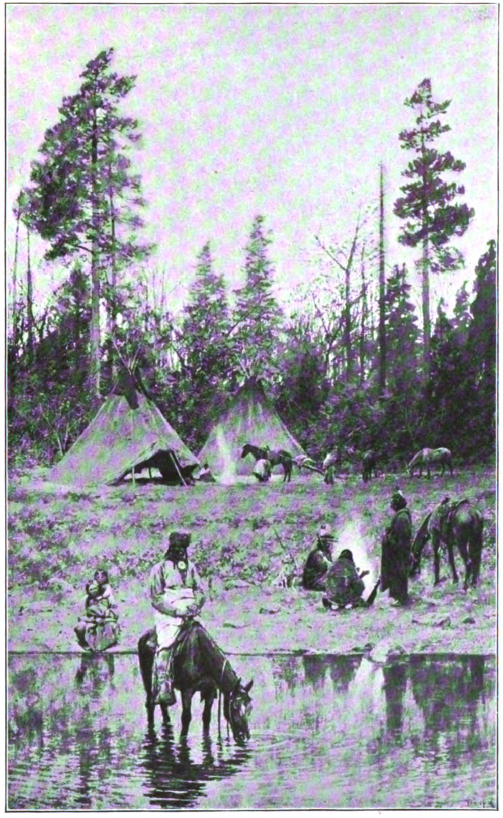 Edited by John James Platt, the initial volume of The Hesperian Tree acts as a platform for well-known Ohio Valley persons to contribute specially written content. Farny contributed the story “Sorrel Horse’s Medicine, A Yarn of the Buffalo Range”, which appears on pages 116-119. He also the original illustration of the title page, along with “Long Day’s End”, on page 41, and “In the Old Hunting Ground”, page 379, an original, more detailed, sketch of which is owned by David Eilers.