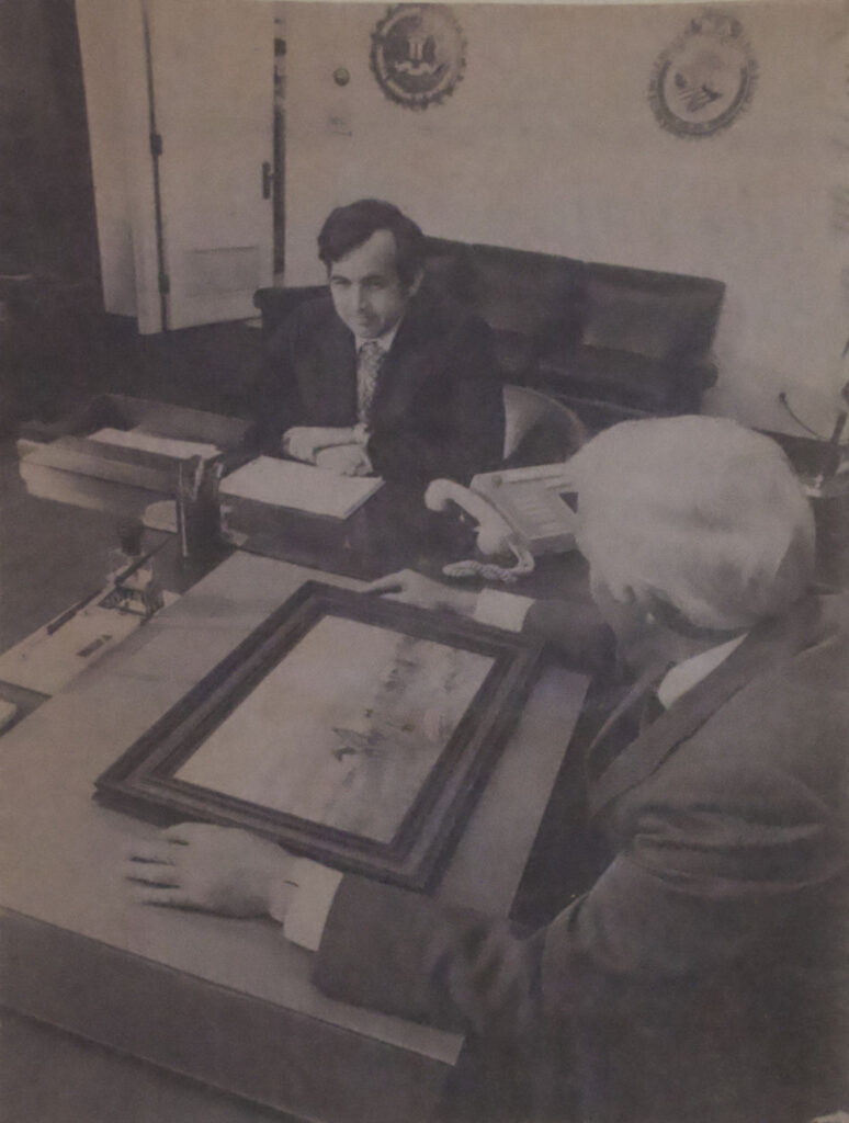 This undated picture from the Cincinnati Library Museum includes no caption, but appears to show two many looking over the Pasture’s New painting, probably after recovering it.