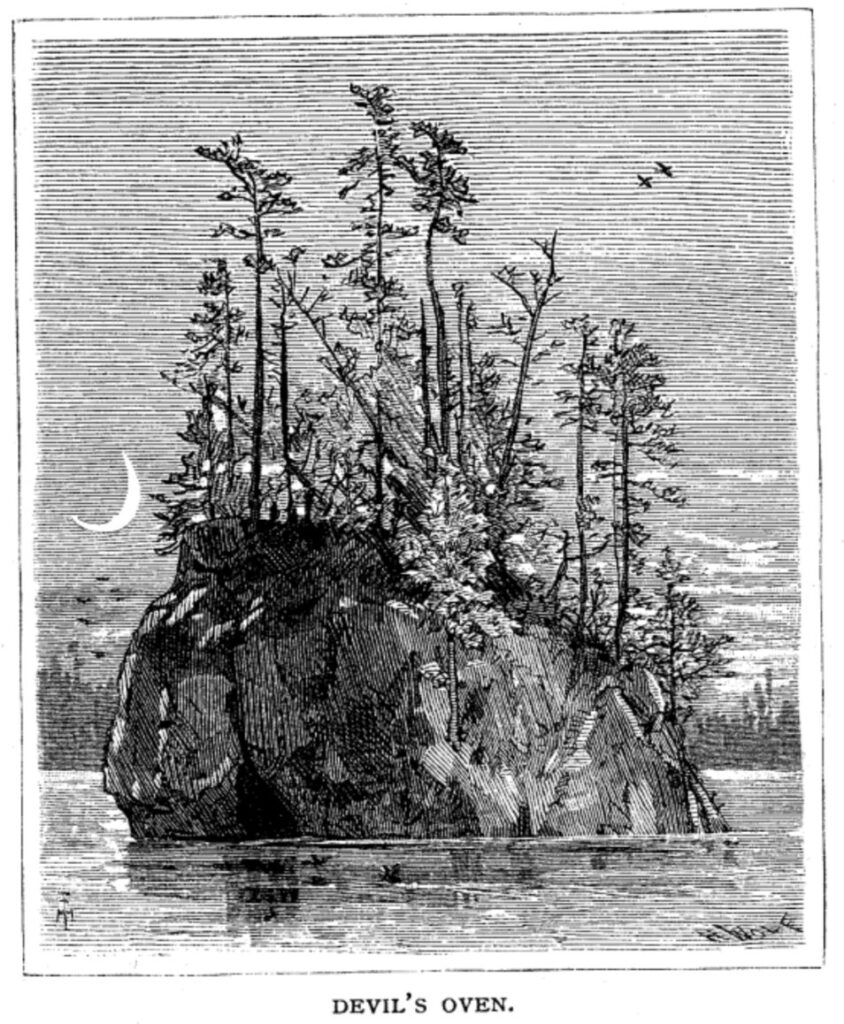 Farny illustrated three images for a story called “Among the 1,000 Islands” that appeared in the April 1878 issue of Scribner’s Monthly, Volume 15, Issue 6, pages 825-842. The magazine can be found in at least two places:
