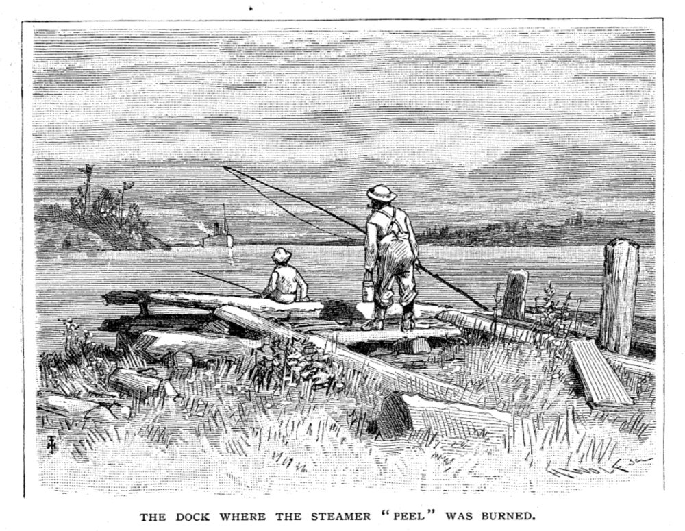 Page 834: The Dock Where the Steamer “Peel” was Burned, block by Henry Wolf