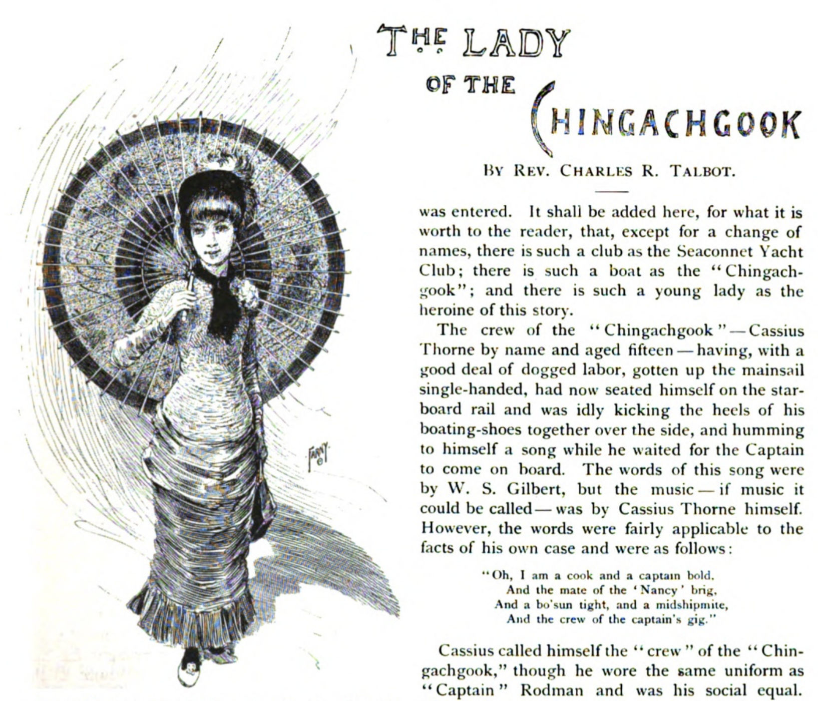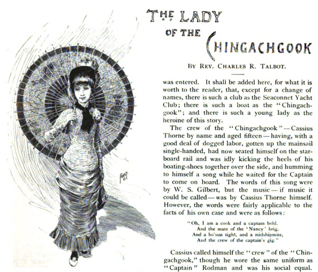 Farny did three illustrations for a story in the August 1883 issue of St. Nicholas Magazine written by Reverend Charles R. Talbot called “The Lady of Chingachgook“. The name Chingachgook may be a nod to Fenimore Cooper’s character of the same name.