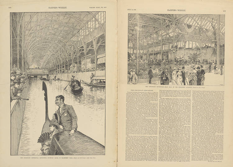 In 1888 the Cincinnati held its Centennial Exposition. Harper’s Weekly covered the story in its July 14, 1888, issue and included two Farny images, one on page 508 and one on page 509: