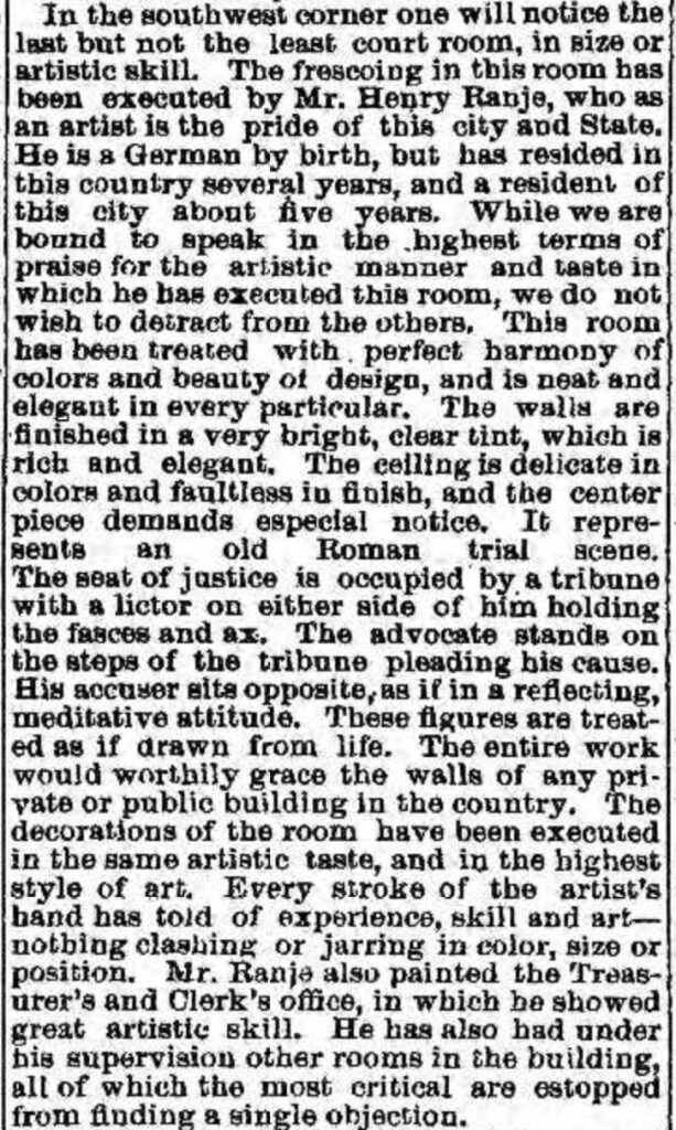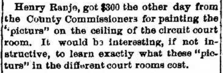 Mr. Ranje would later get paid $300 for his work on the courthouse, according to a January 19, 1878, page 4, column 4 blurb, in The People: