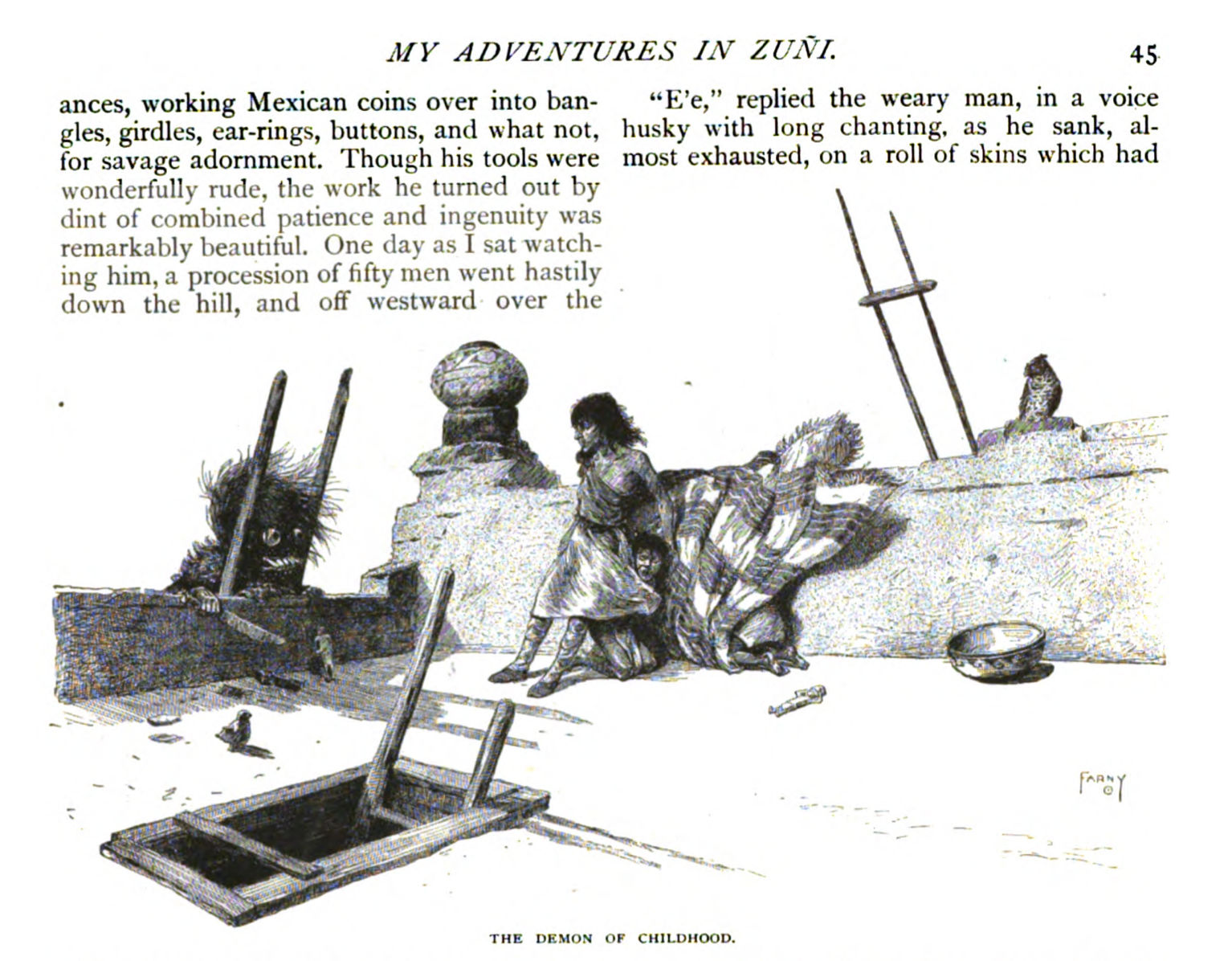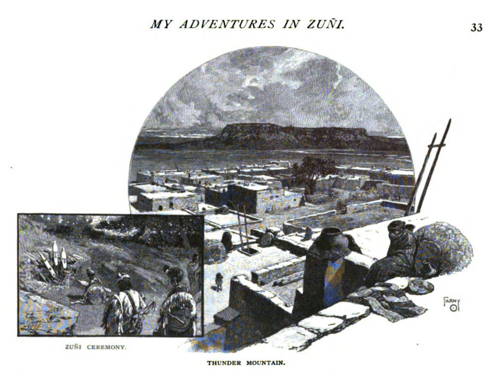 Frank Cushing’s life with the Zunis spanned several years. With plenty to say, Cushing’s Century article was published in three parts. There’s more information on Farny and his time with the Zunis in the Part I post. Farny’s illustrations were included in all three.