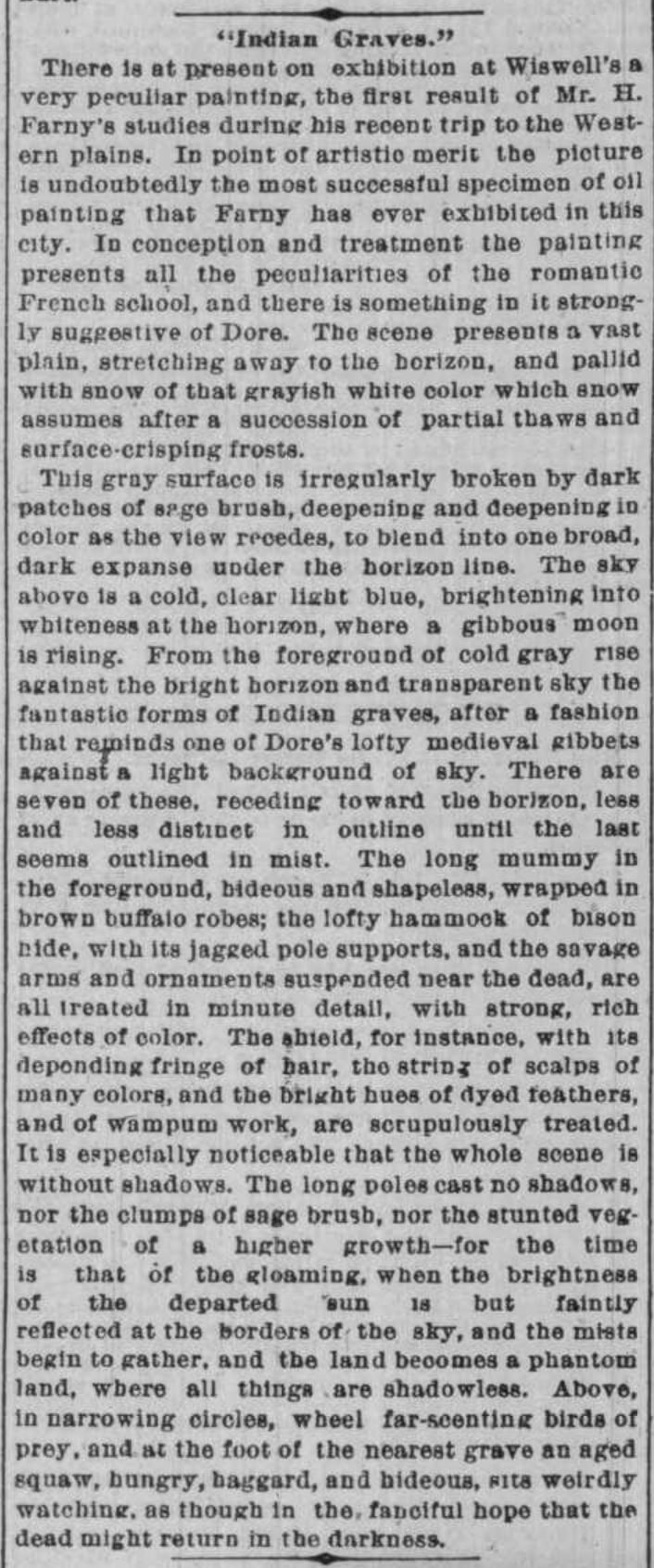 Three months later, following his trip West, an October 14 article in The Cincinnati Commercial describes a new painting from Farny based on his recent experience: