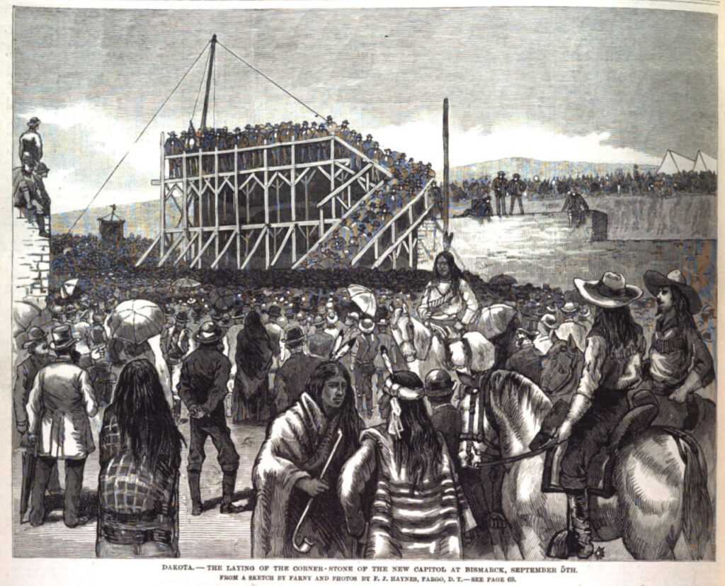 This image of the cornerstone laying in Bismarck on September 5 was published in Frank Leslie’s Illustrated Magazine, September 22, 1883, page 72: